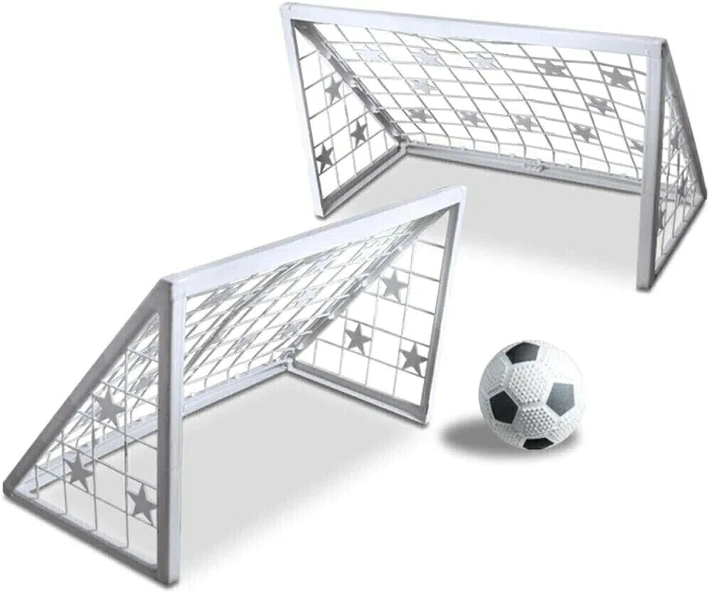 Contém: 2 Gols completos, 2 bonecos barreiras, 1 lona com alvos e 1 bola