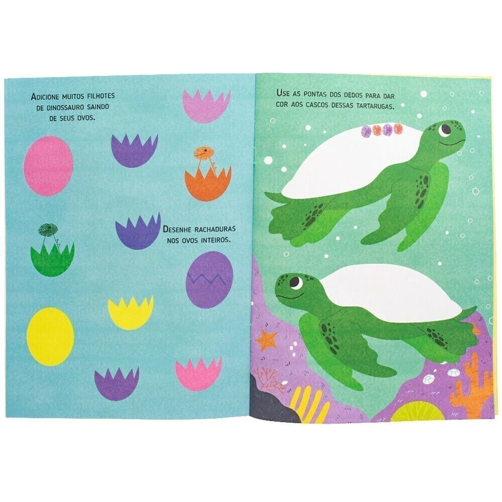 Este livro está repleto de ideias criativas para fazer dinossauros e muito mais com impressões digitais. Há muito espaço para você preencher, então, retire a tampa da almofada de tinta e divirta-se.