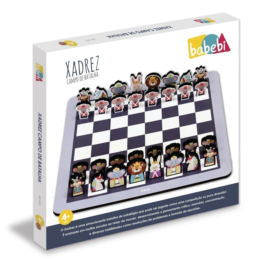 Uma criança pode começar a jogar xadrez a partir dos 4 anos de idade. Inicialmente o jogo para ela pode ter simples significados, como da diversão, o brincar junto, o tempo de qualidade com seu ‘adversário’, a criatividade e imaginação. Aos poucos vai ganhando um sentido maior, que é da competição e do treino deste ‘esporte mental’. Feito de madeira reflorestada.